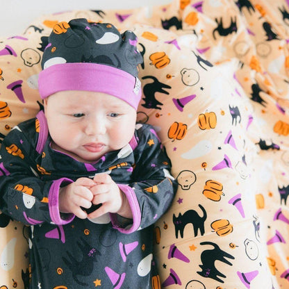 أيام مرعبة ممتعة إلى ليالي سحرية تحت ضوء القمر، مجموعة الهالوين هي المكافأة المثالية لخريف. أشباح غريبة وطباعة سحرية على بامبو ناعم بشكل مخيف سيحبها صغيرك ويرغب في ارتدائها طوال العام!