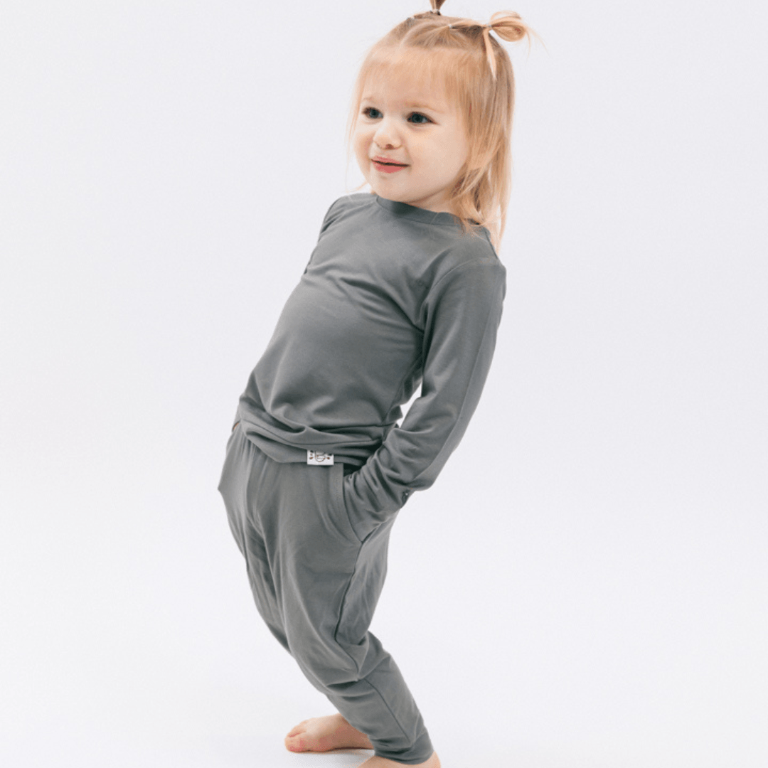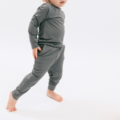 طقم جوجر بلون موحد يتناسب مع اللعب في المنزل أو المغامرات في الخارج. القماش متوسط الوزن يجعل هذا عنصرًا أساسيًا يوميًا!