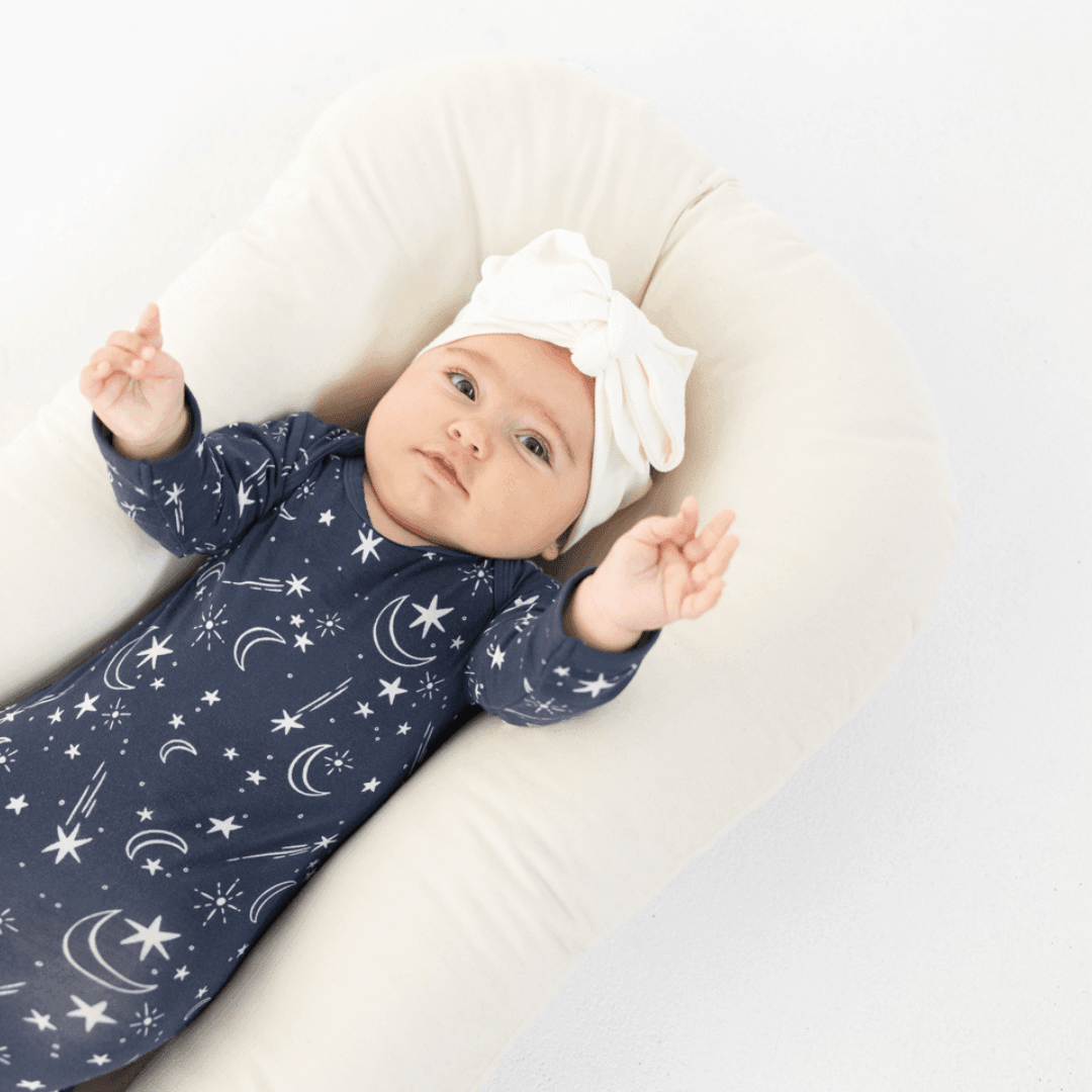 伸縮性のあるバンブーで作られており、ヘッドバンドやリボンとしてスタイリングできます。着脱が簡単で、家族が日常を過ごしている間も滑ったりずれたりしません!