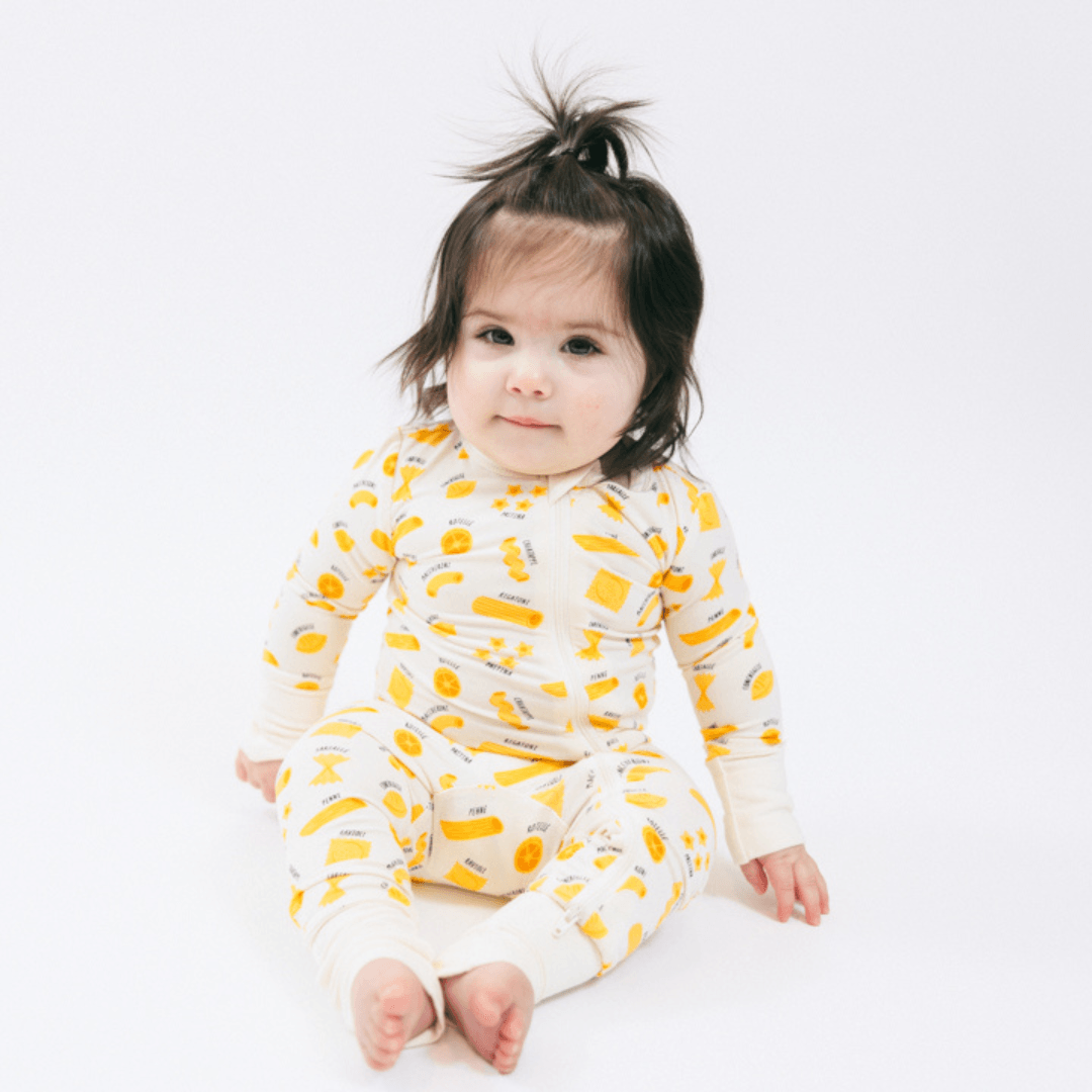 Pasta er designet med enkelhet i tankene. Mønsteret viser dine favoritt italienske nudler, pent arrangert på et kremfarget stoff.