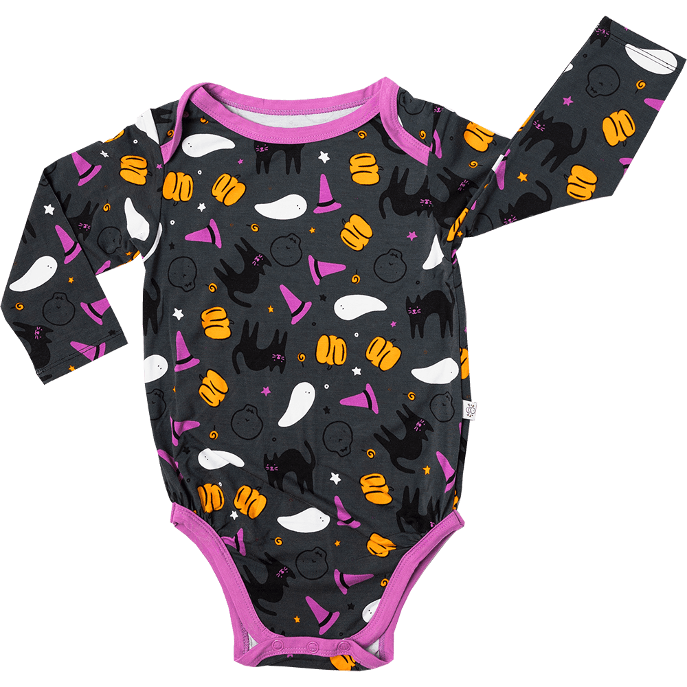Ghoulishly fun days to moonlit magic nights, the Halloween collection is the perfect fall treat. Whimsical ghosts and hocus pocus printed on scarily-soft bamboo that your little one will want to wear year-round!
