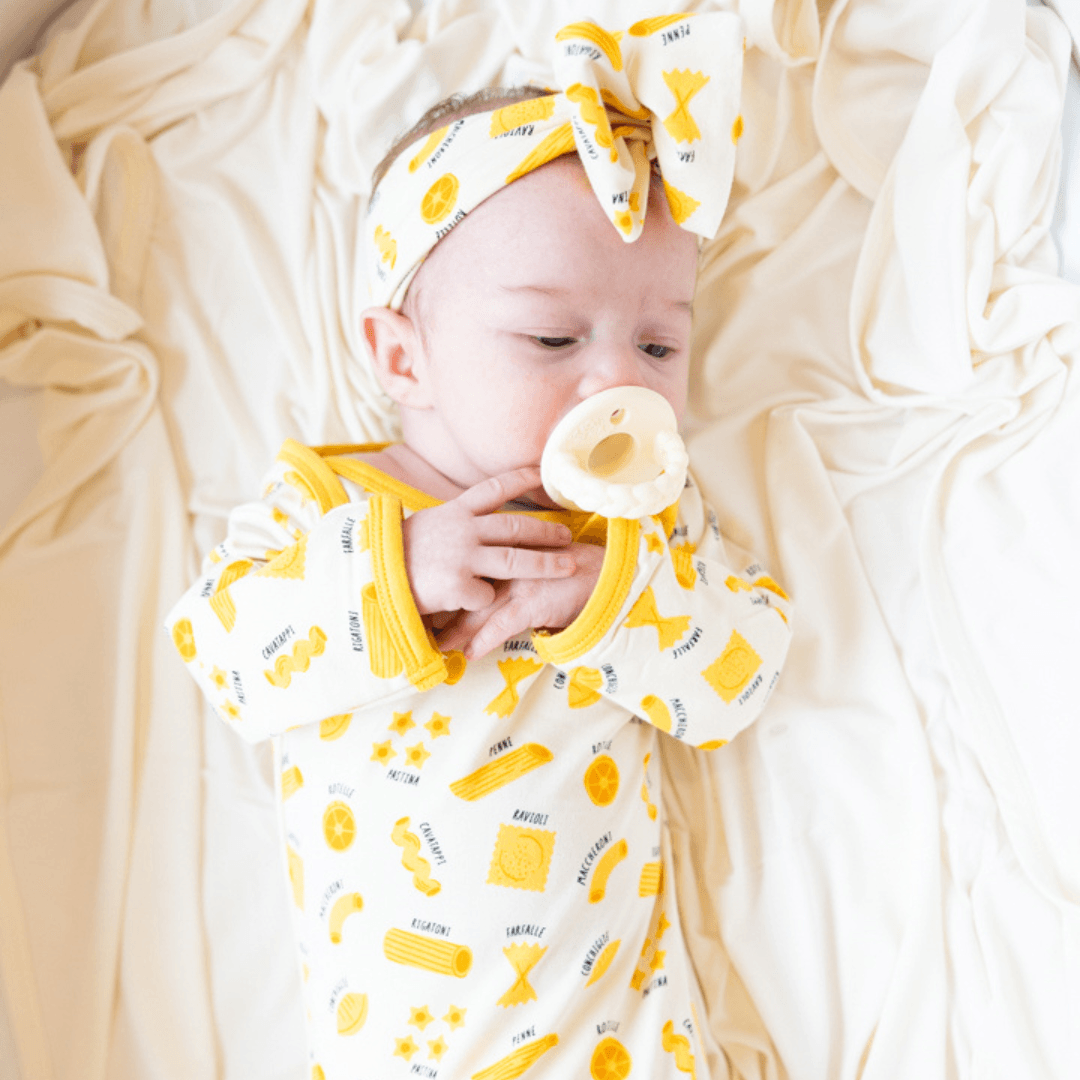 One-piece adjustable gown that your new family member will live in. Your baby benefits from the incredible bamboo feel while moms and dad will love the ease of changes!