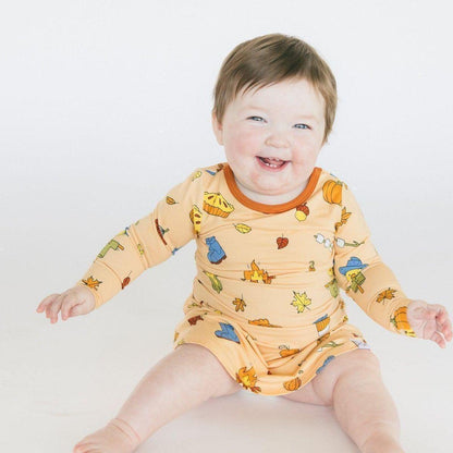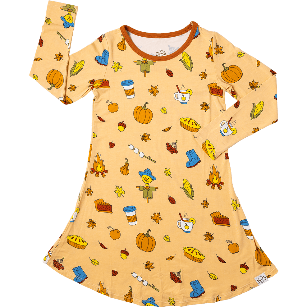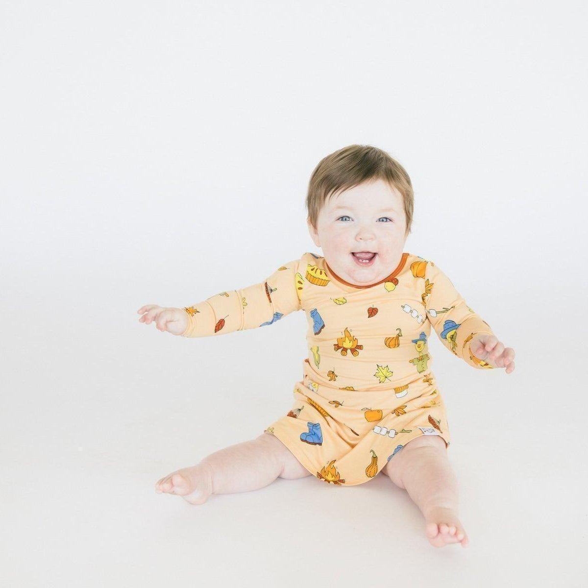 Cozy comforts in vibrant fall colors await your little one in this bountiful harvest. Autumn elements like pumpkin-spiced coffee, scarecrows, and bonfires are neatly arranged on a warm, neutral fabric.