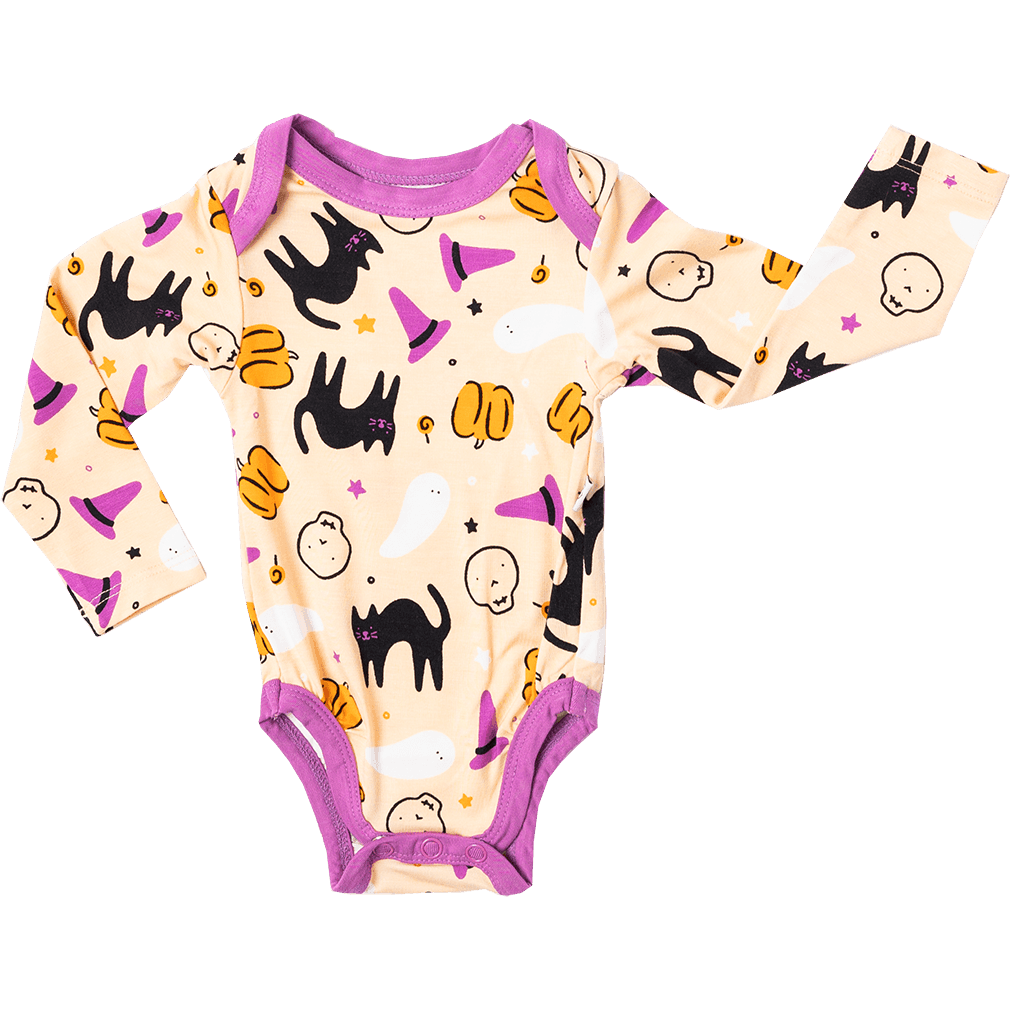 Korkunç eğlenceli günlerden ay ışığında sihirli gecelere, Cadılar Bayramı koleksiyonu mükemmel bir sonbahar ikramıdır. Şirin hayaletler ve korkutucu yumuşak bambuya basılmış hocus pocus, küçüklerinizin yıl boyunca giymek isteyeceği bir tasarım!